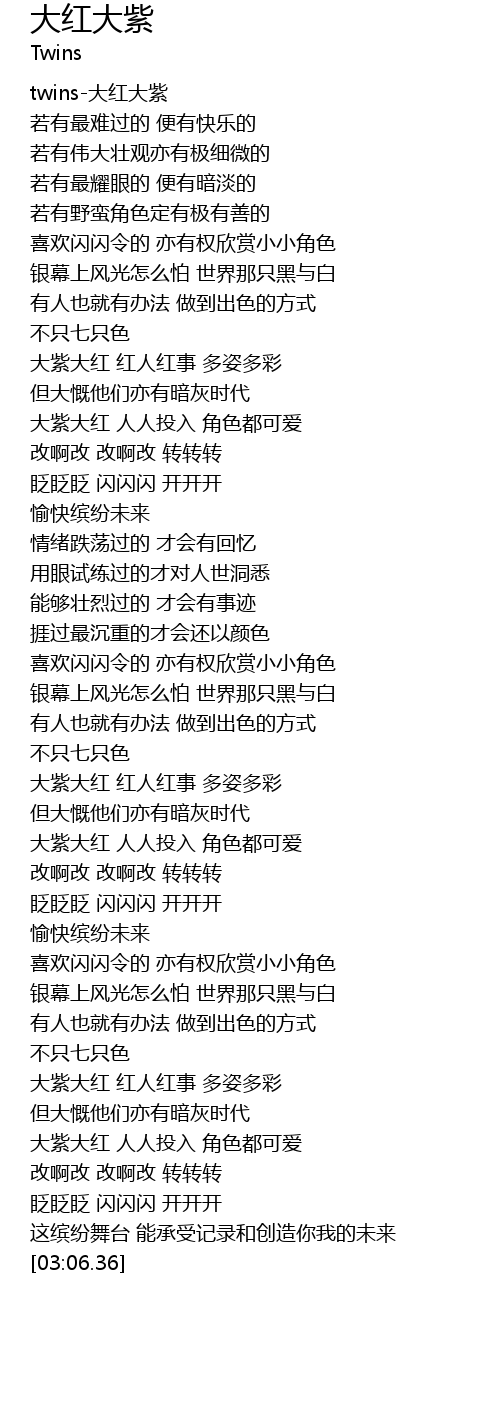 | [00:02.54] | twins-大红大紫 |