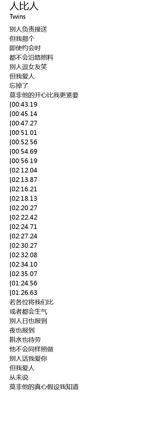 | [00:38.43] | 莫非他的开心比我更紧要 |