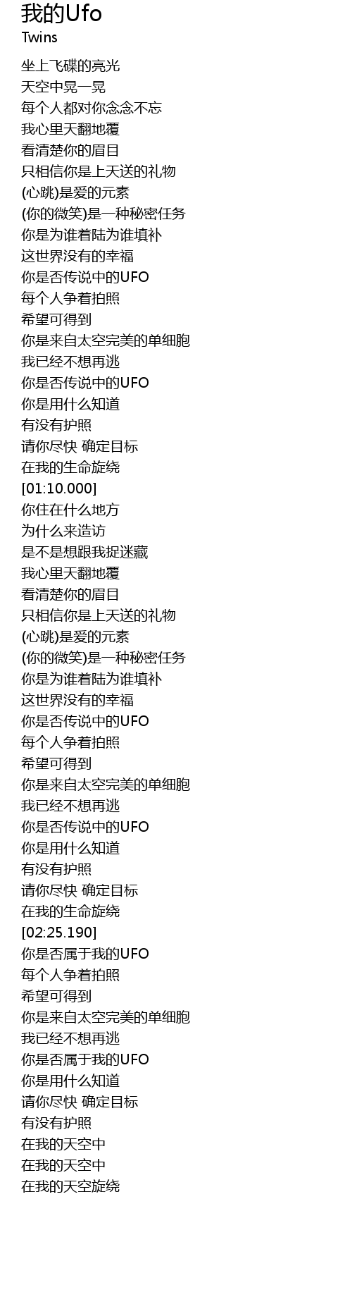 | [02:33.540] | ni shi fou shu yu wo de UFO |