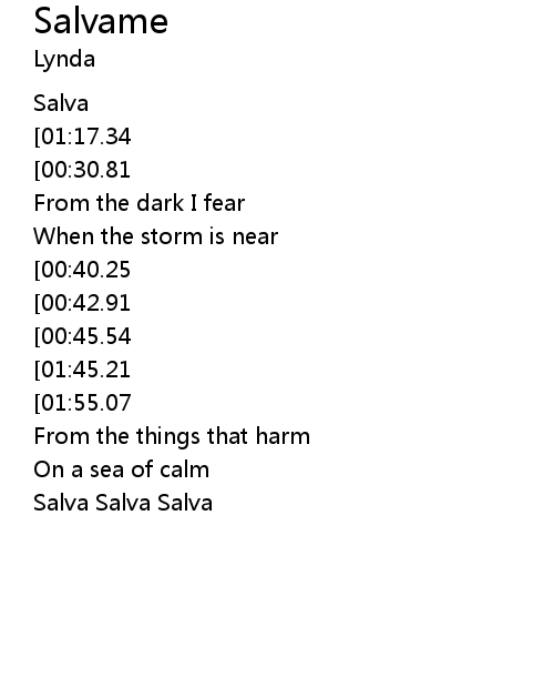 | [03:00.09] | Salva Salva Salva |
