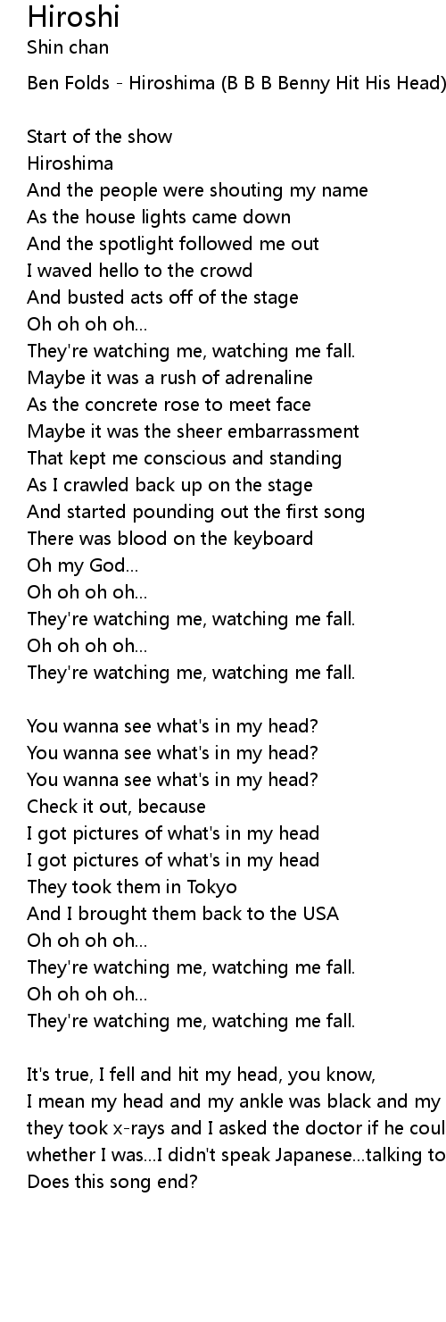 Ben Folds - Hiroshima (B B B Benny Hit His Head) |