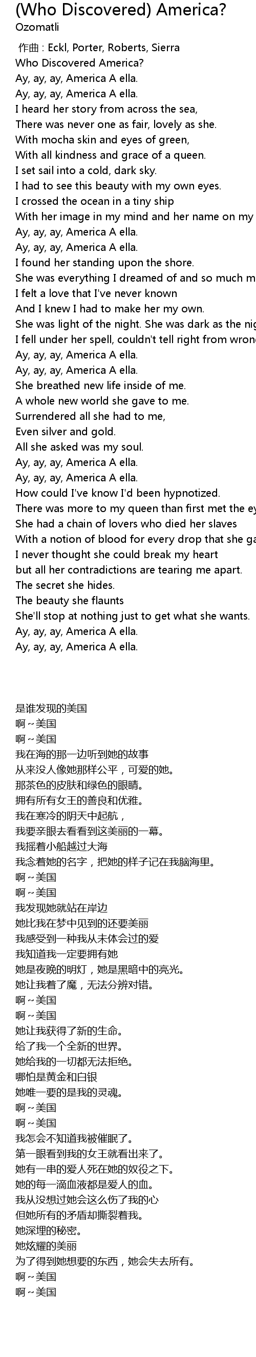 | [03:55.42] | Ay, ay, ay, America A ella. |