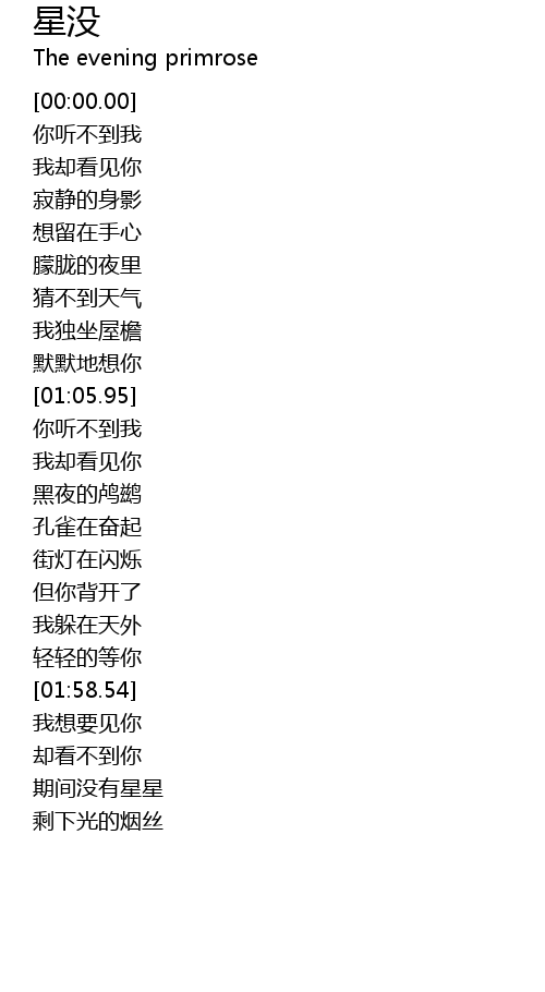 | [01:35.56] | 街灯在闪烁 |