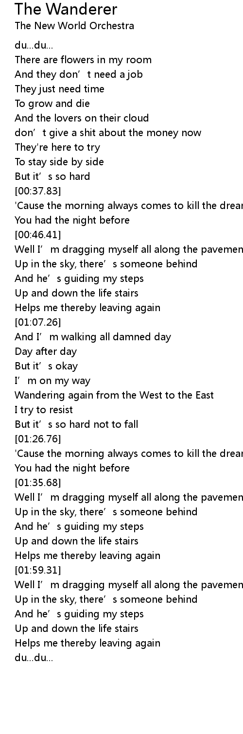 | [01:36.05] | Well I' m dragging myself all along the pavement |