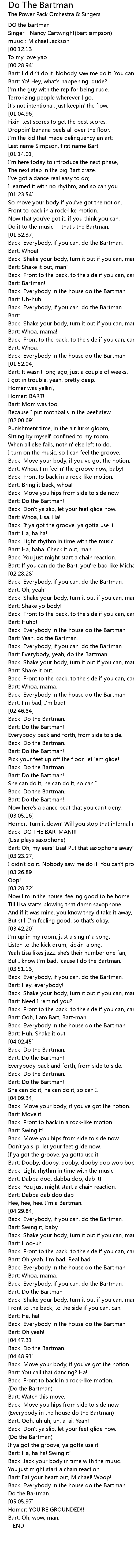 | [02:54.79] | Back: Do the Bartman. |
