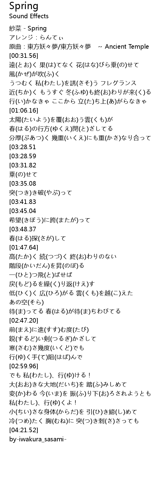 | [00:00.00] | 紗菜 - Spring |