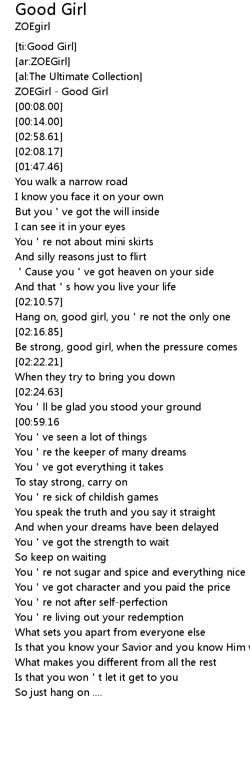 | [00:43.70] | Hang on, good girl, you re not the only one |