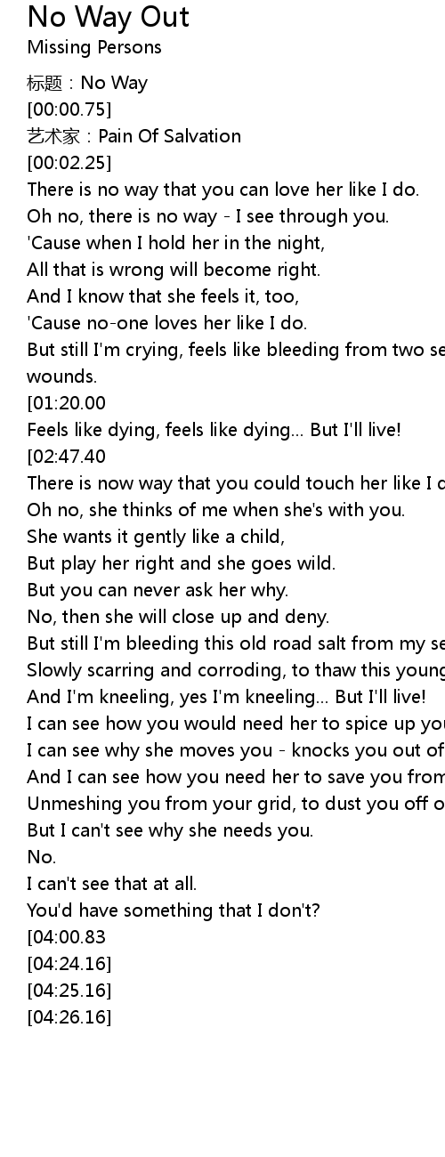 | [00:00.00] | 标题:No Way |