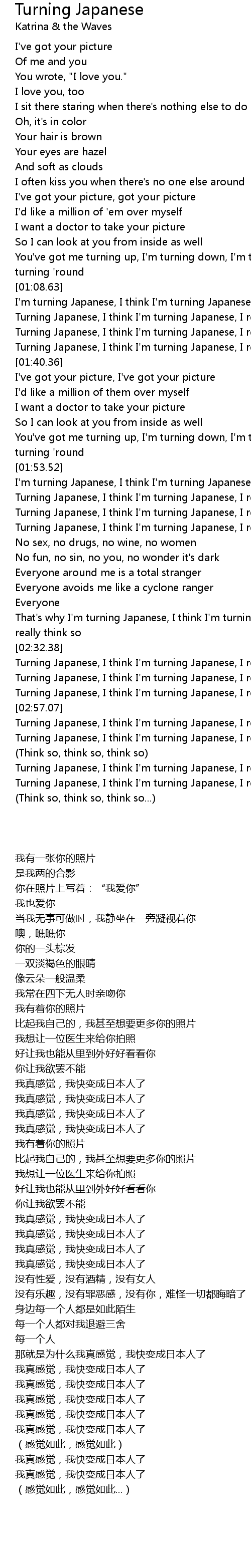 That's why I'm turning Japanese, I think I'm turning Japanese, I really think so |