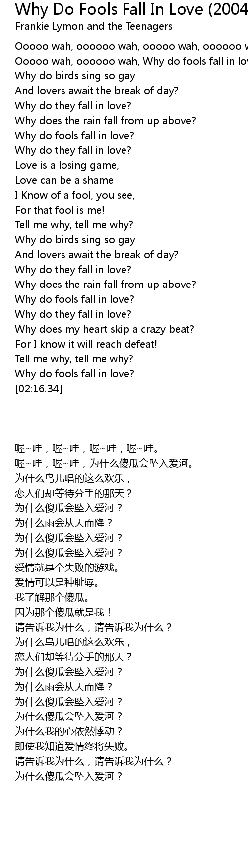 Ooooo wah, oooooo wah, Why do fools fall in love |