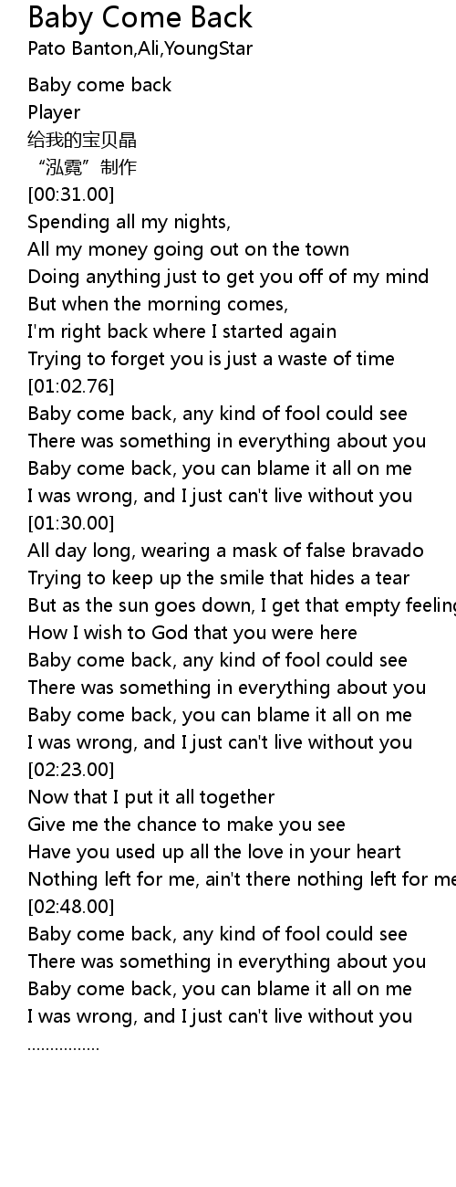 | [00:01.00] | Baby come back |
