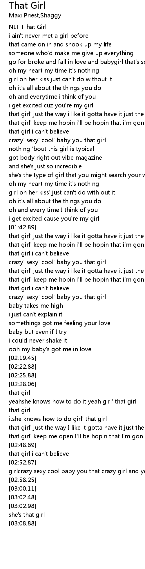 | [01:01.21] | crazy' sexy' cool' baby you that girl |