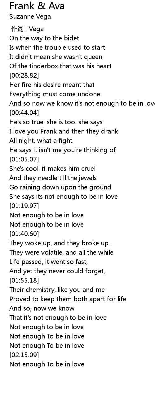 | [00:35.84] | And so now we know it' s not enough to be in love |