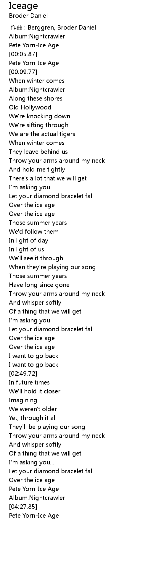| [00:00.00] | 作曲 : Berggren, Broder Daniel |