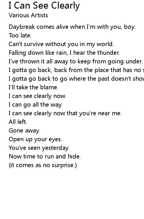 I can see clearly now. |