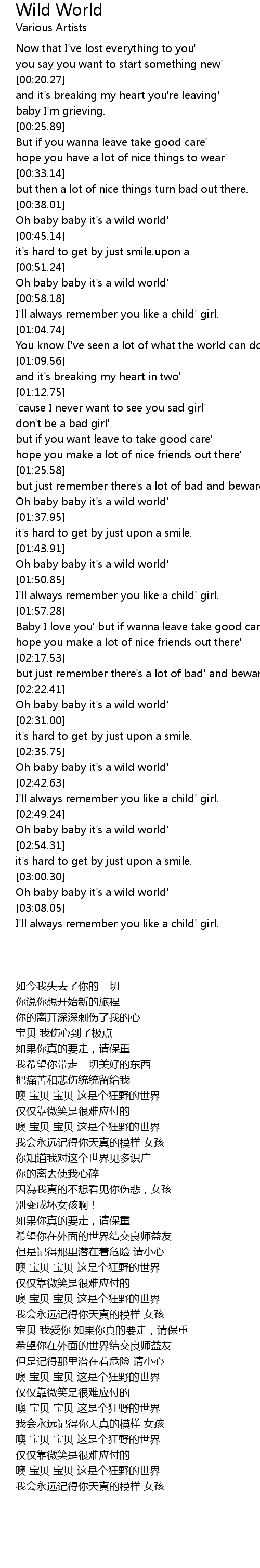 Oh baby baby it's a wild world' |