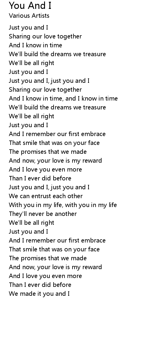 Just you and I, just you and I |