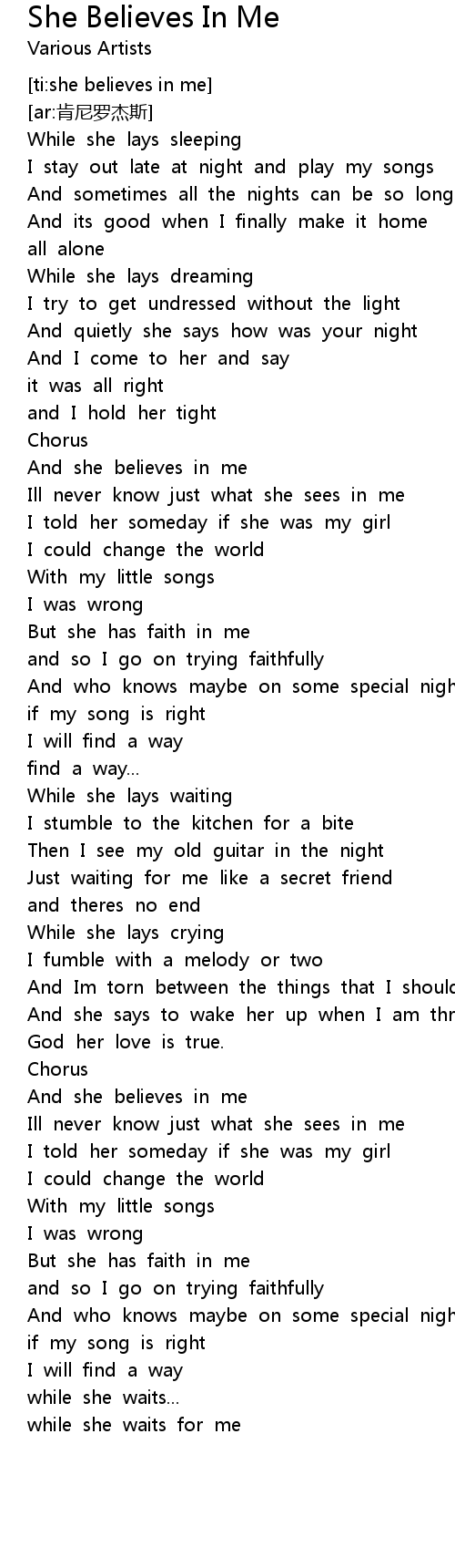 | [02:59.00] | And she believes in me |