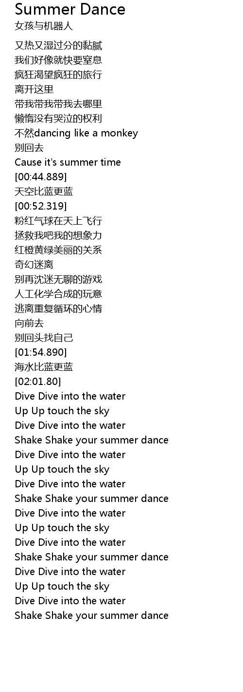| [03:04.98] | Shake Shake your summer dance |