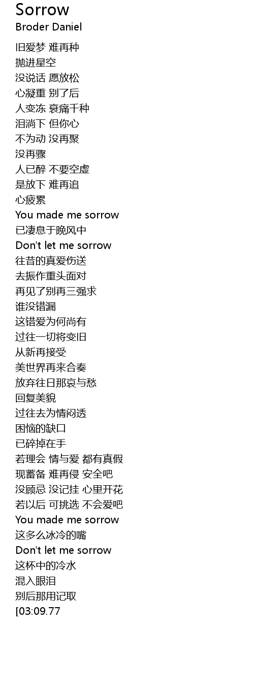 | [01:18.01] | You made me sorrow |