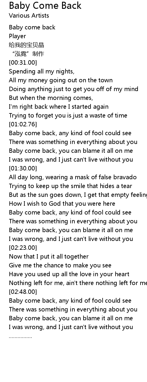 | [02:08.42] | Baby come back, you can blame it all on me |