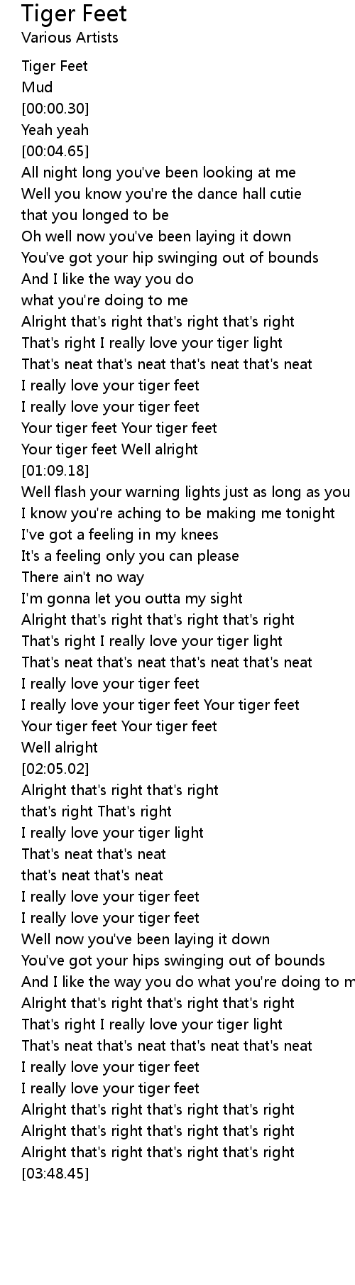 Your tiger feet Well alright |