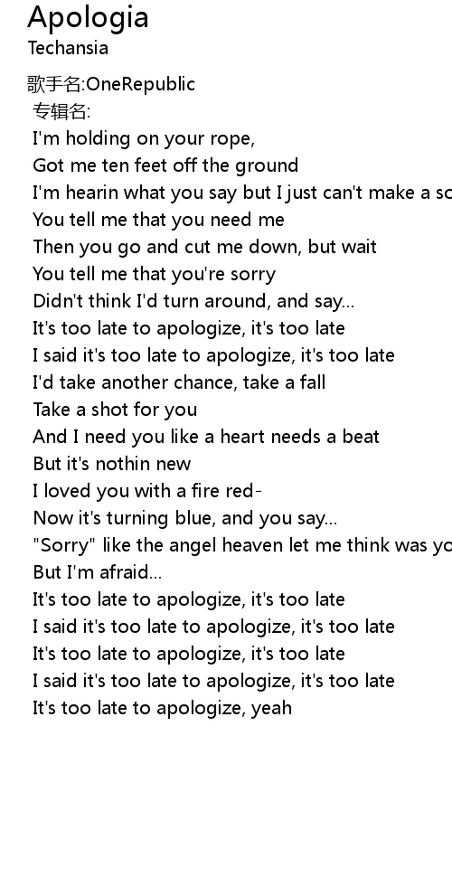 | It' s too late to apologize, it' s too late | |