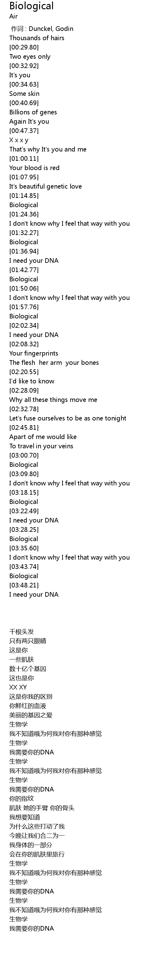 | [02:03.91] | I need your DNA |
