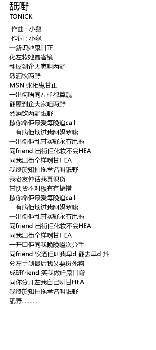 | [02:33.98] | 同friend 饮酒佢叫我早d 翻去早d 抖 |