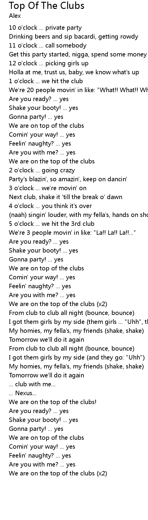 | Next club, shake it 'till the break o' dawn | |