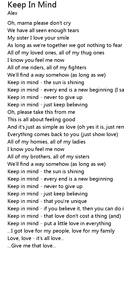 | Keep in mind - just keep believing | |