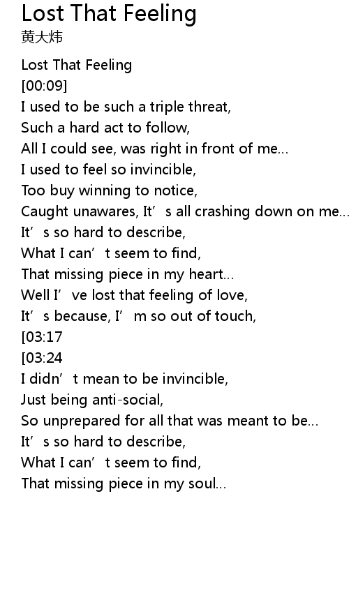 | [03:51][03:24][02:02] | I' ve lost that feeling |