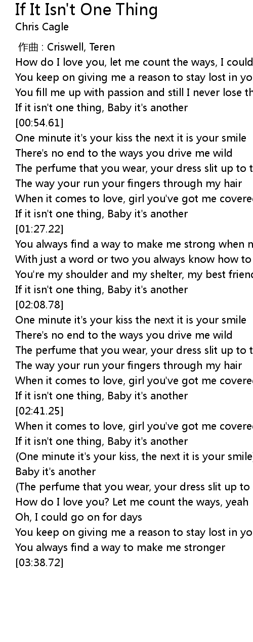 | [02:00.74] | If it isn't one thing, Baby it's another |