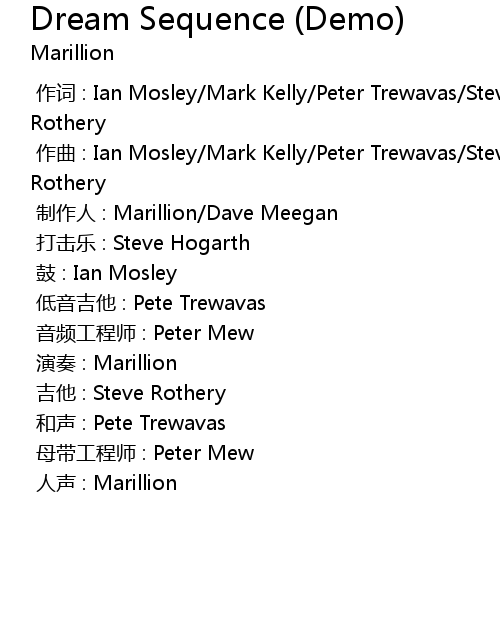 | [00:00.000] | 作曲 : Ian Mosley/Mark Kelly/Peter Trewavas/Steve Hogarth/Steve Rothery |