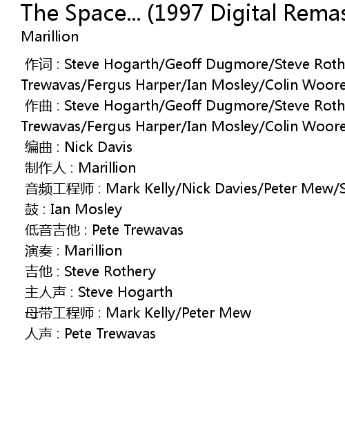 | [00:00.000] | zuo ci : Steve Hogarth Geoff Dugmore Steve Rothery Mark Kelly Peter Trewavas Fergus Harper Ian Mosley Colin Woore |