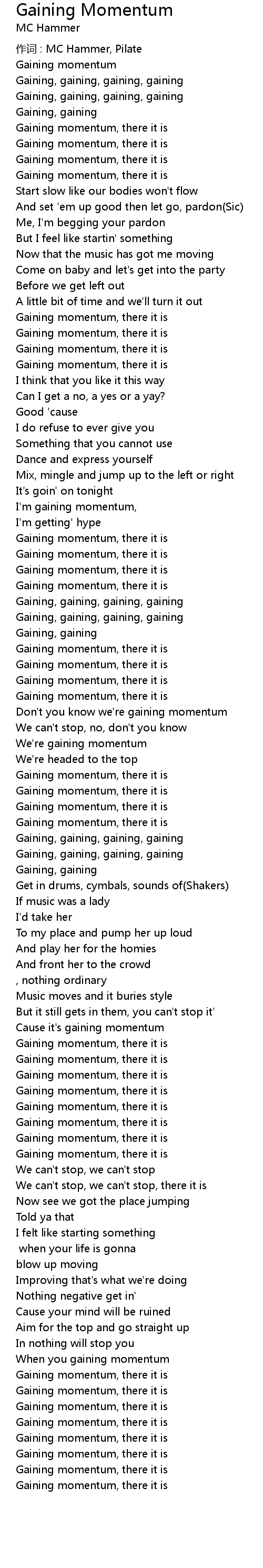 | Don' t you know we' re gaining momentum | |