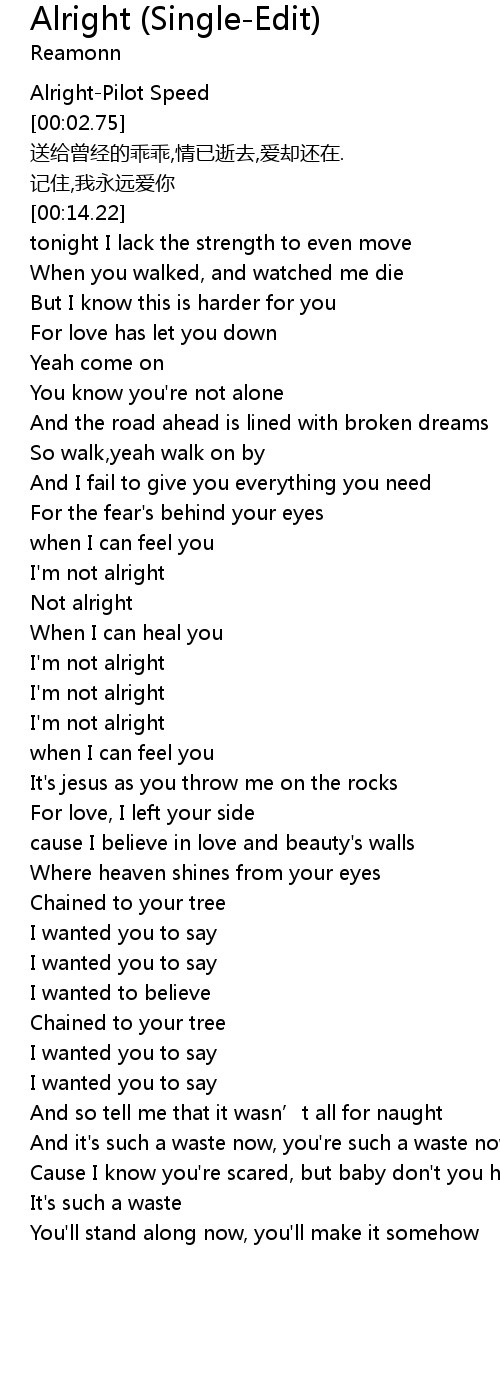 | [00:01.54] | Alright-Pilot Speed |
