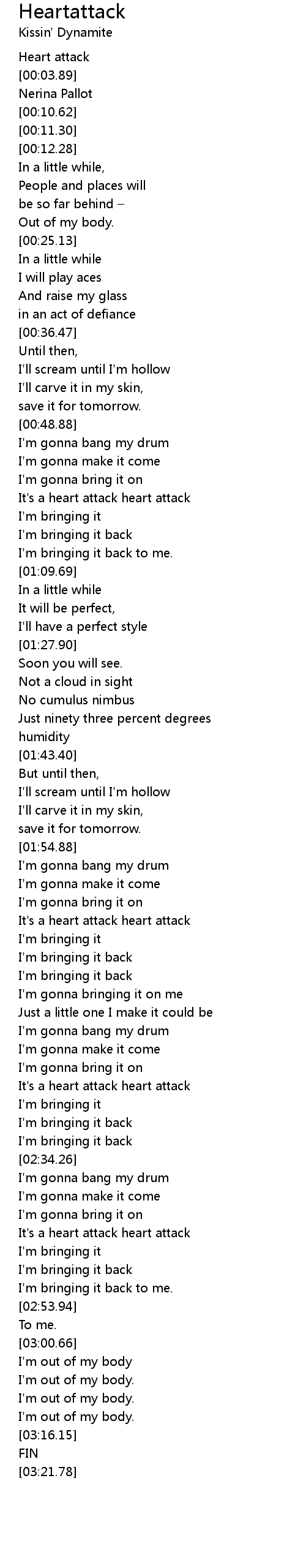 | [02:44.33] | It's a heart attack heart attack |