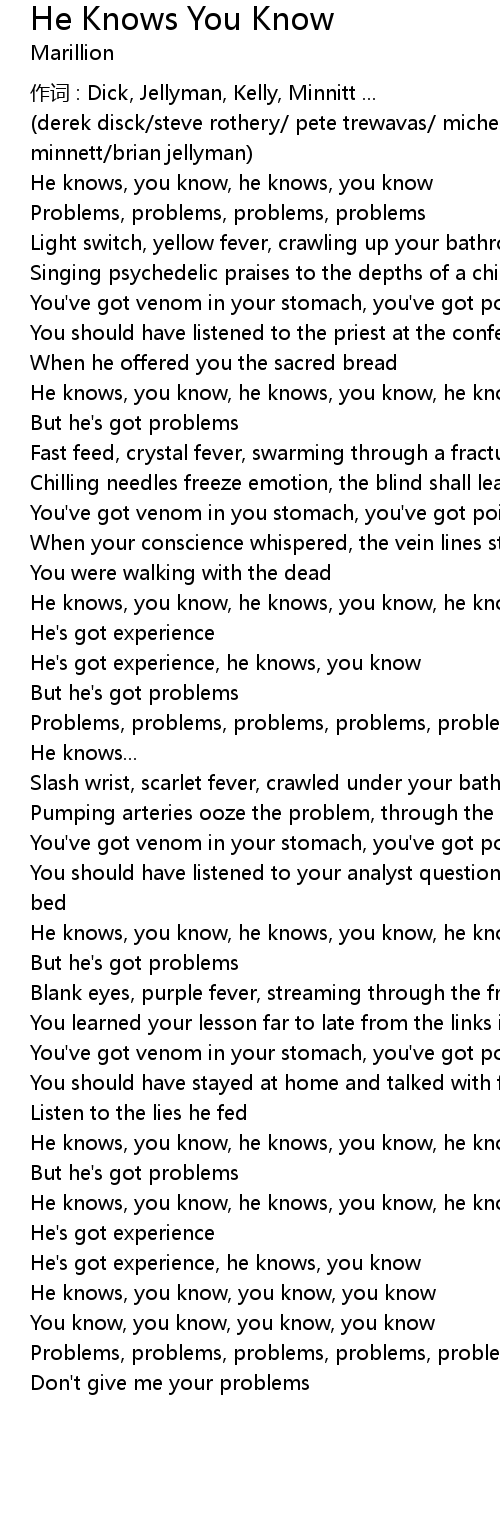 | You' ve got venom in you stomach, you' ve got poison in your head | |