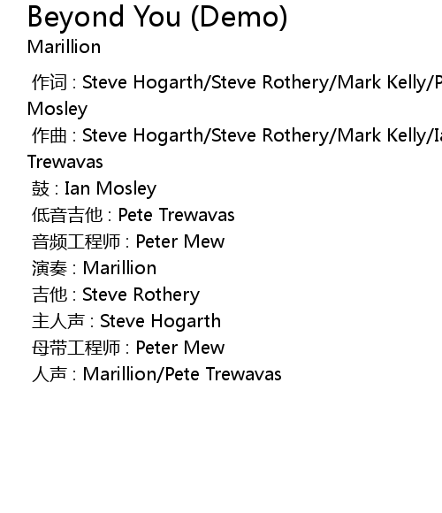 | [00:00.000] | 人声 : Marillion/Pete Trewavas |