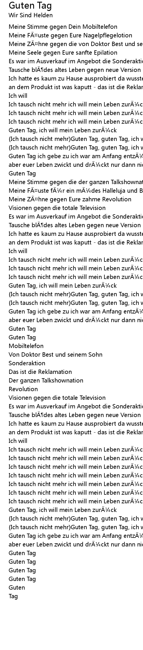 | (Ich tausch nicht mehr)Guten Tag, guten Tag, ich will mein Leben zurück | |