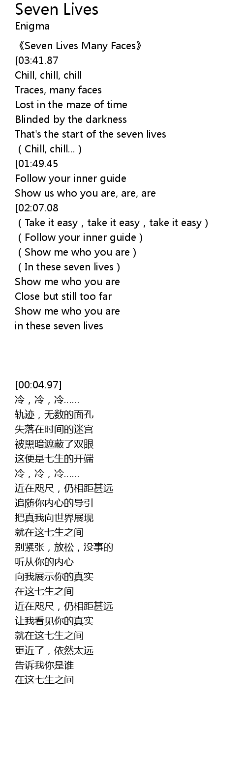 | [00:04.97] | 《Seven Lives Many Faces》 |