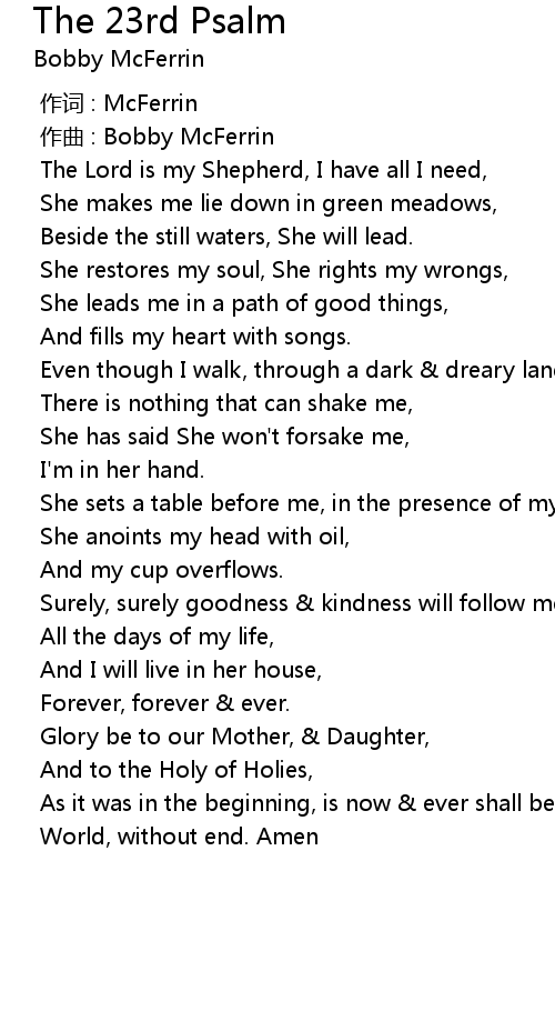 | Song | The 23rd Psalm |