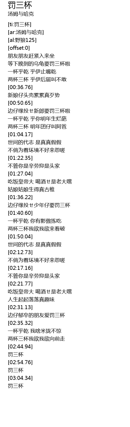 | [02:31.76] | 边仔郁卒的朋友爱罚三杯 |