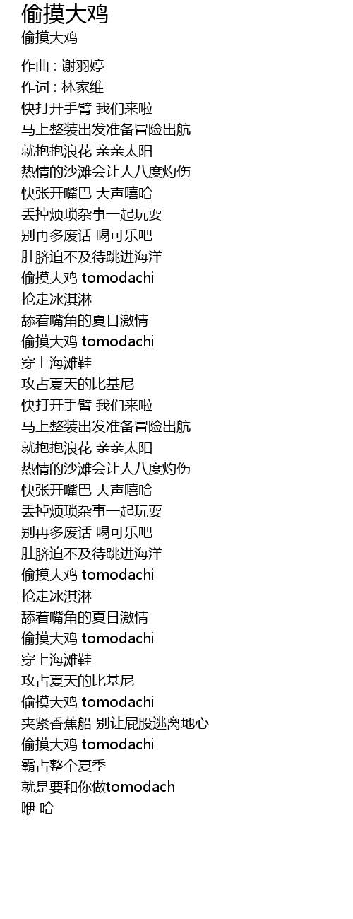 | 偷摸大鸡 tomodachi | |