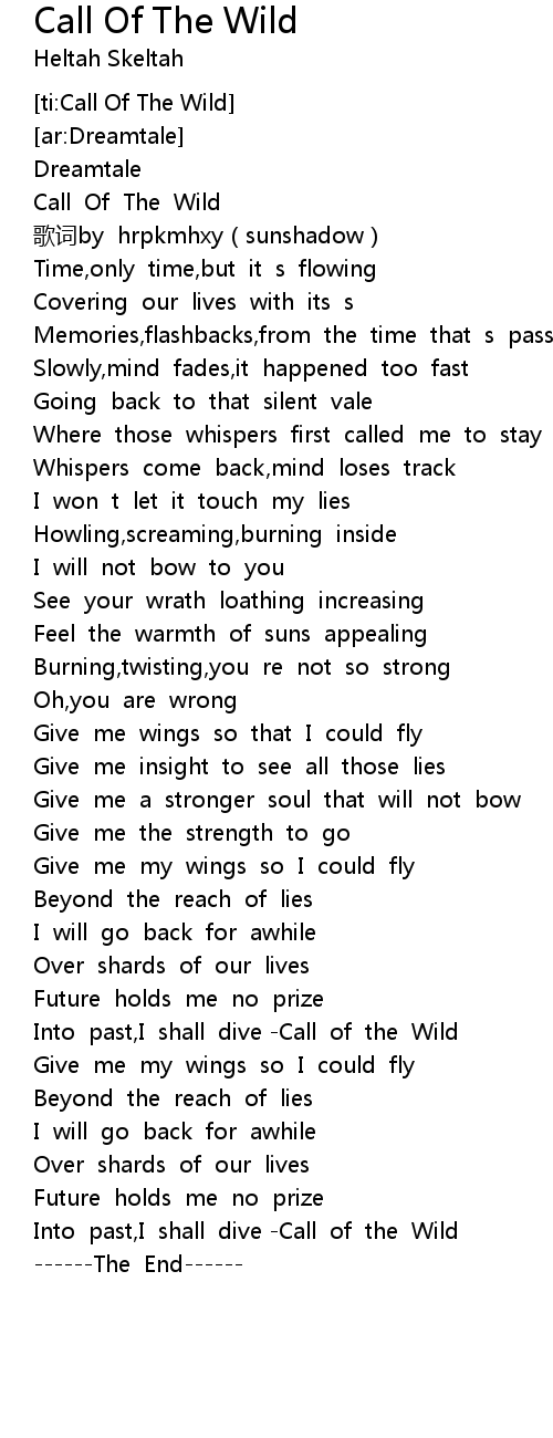 | [02:51.949] | Into past, I shall dive Call of the Wild |