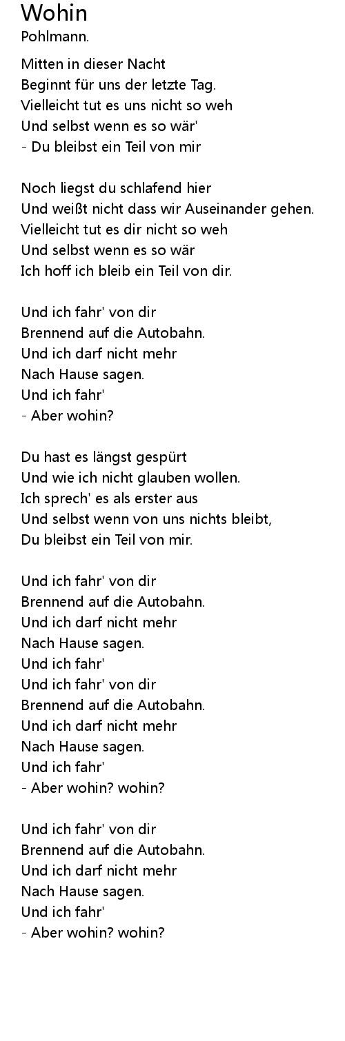 | Und wei t nicht dass wir Auseinander gehen. | |