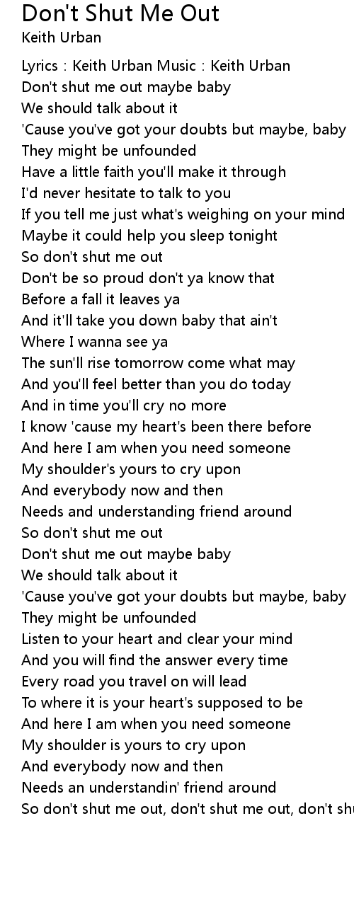 | Don' t shut me out maybe baby | |