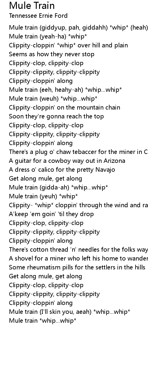 Mule train (giddyup, pah, giddahh) *whip* (heah)...*whip* |