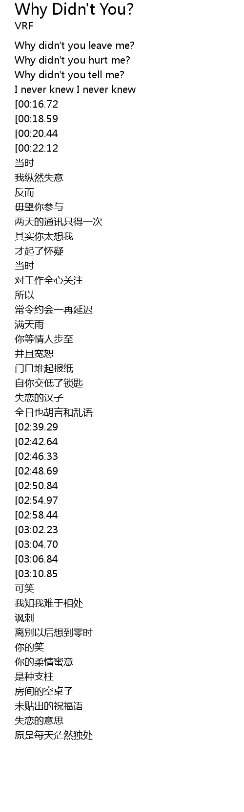 | [02:01.61][00:20.44] | Why didn' t you tell me? |
